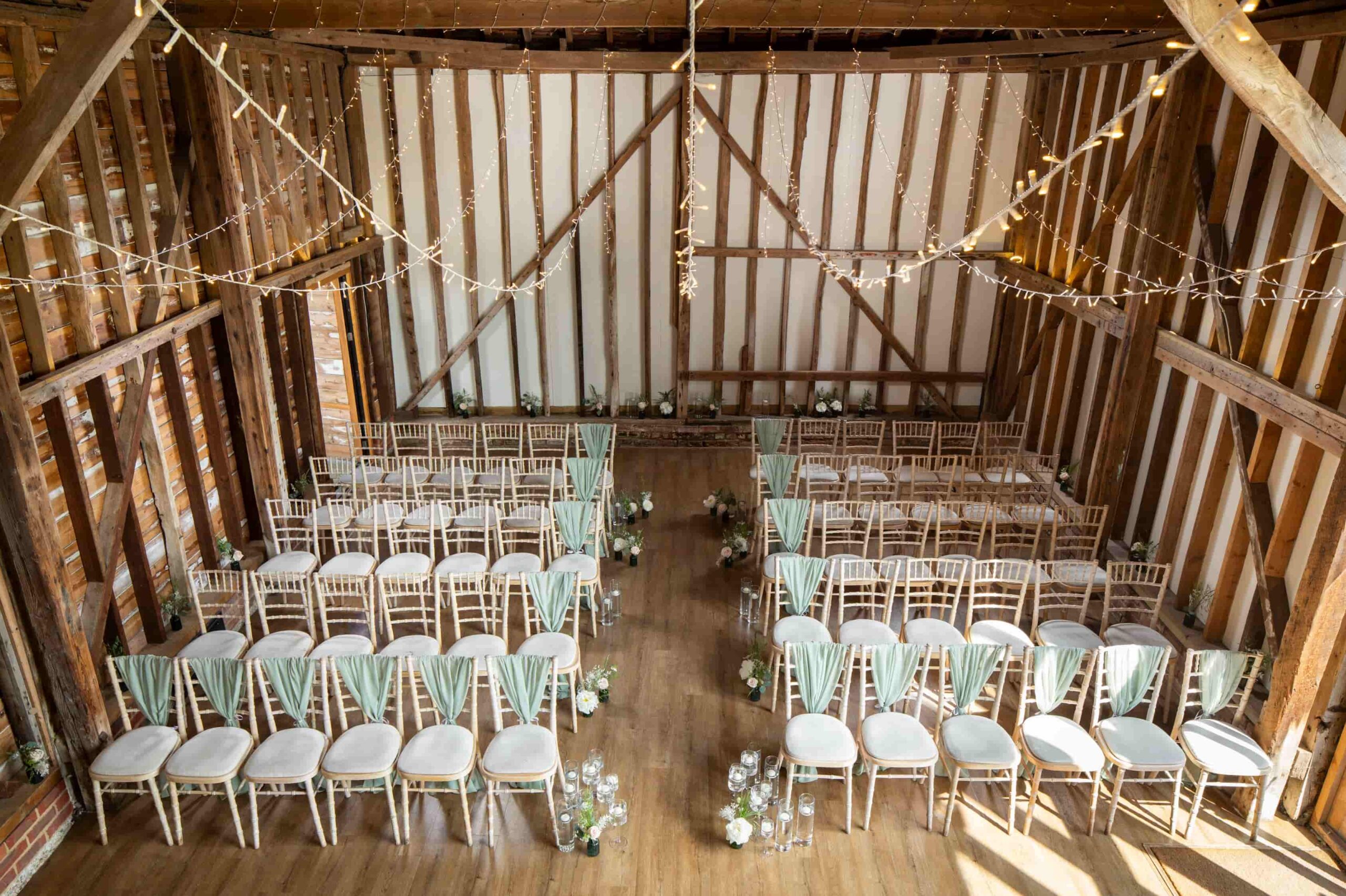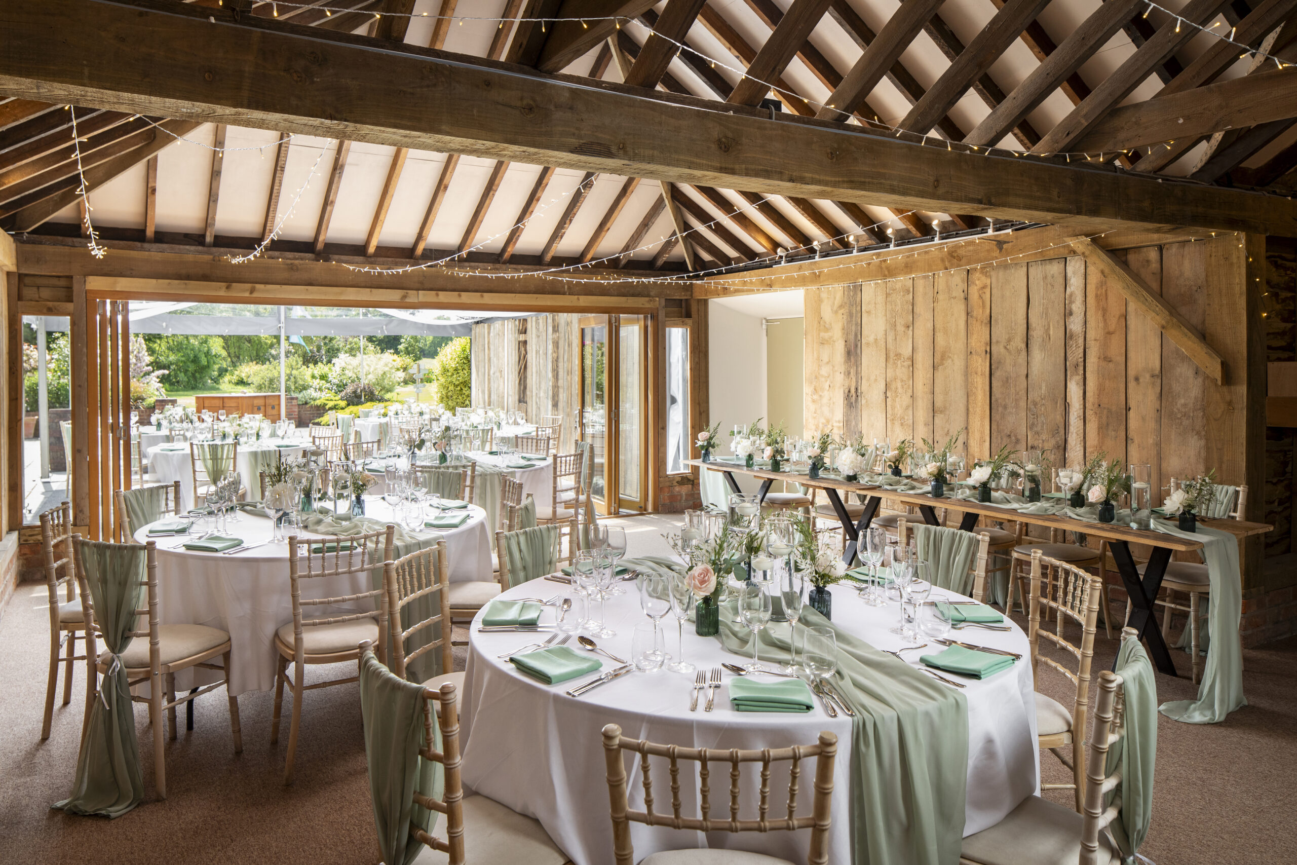 The Main Barn is the heart of Stokes Farm Barn and provides a stunning setting for both your ceremony and evening celebrations.