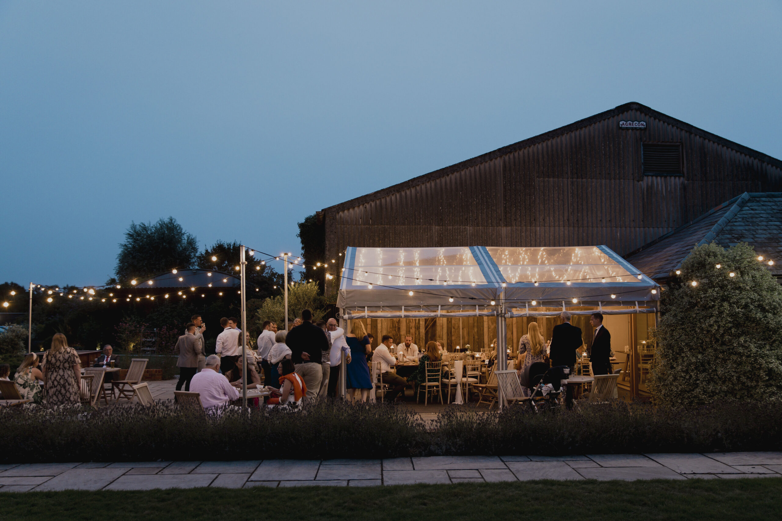 Soft festoon lighting drape across the patio and along the lawn, creating the unmistakeable festival magic as day turns to dusk. Perfect for sunset photos, relaxed mingling and creating a warm, welcoming vibe all evening long!